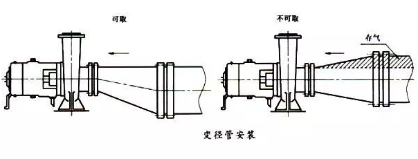泵出口管道卜的異徑管府靠近泵的出口。頂部吸人和排出的泵,在間距很小時,可采用偏心異徑管加大間距。