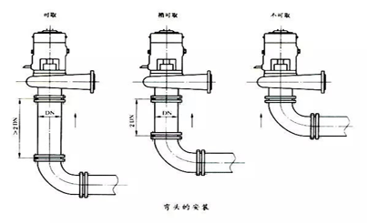 六、安裝于吸入側(cè)的閘閥,為避免積存空氣,應(yīng)安裝成水平方向或向下傾斜。